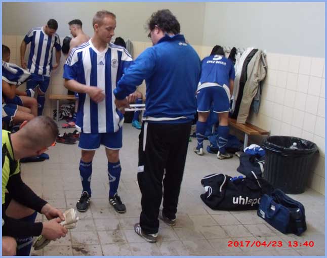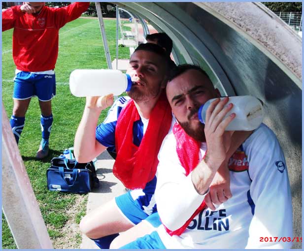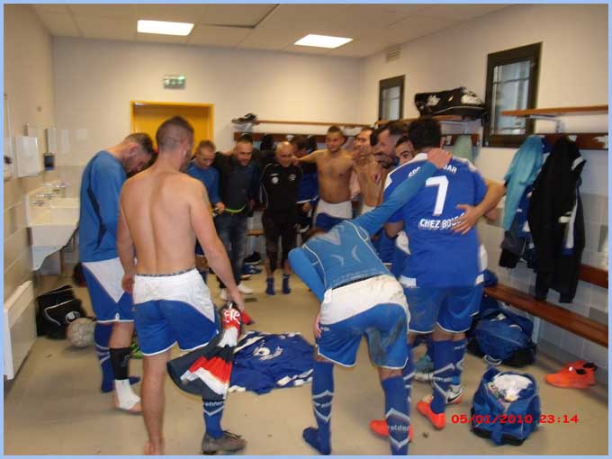 Mi-temps décontractée avec 4 buts d'avance.        Julien, fier de son quadruplé !             Kamal auteur d'un doublé