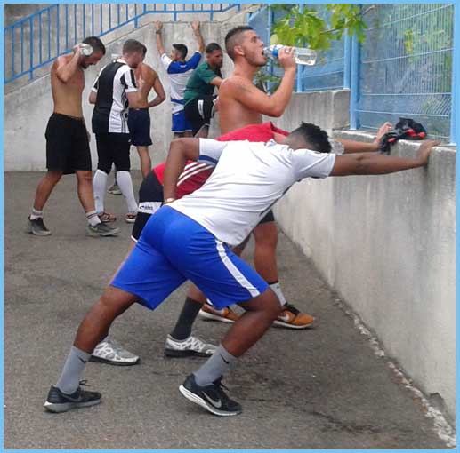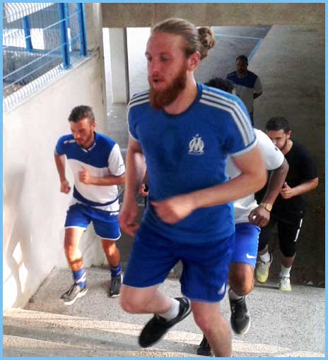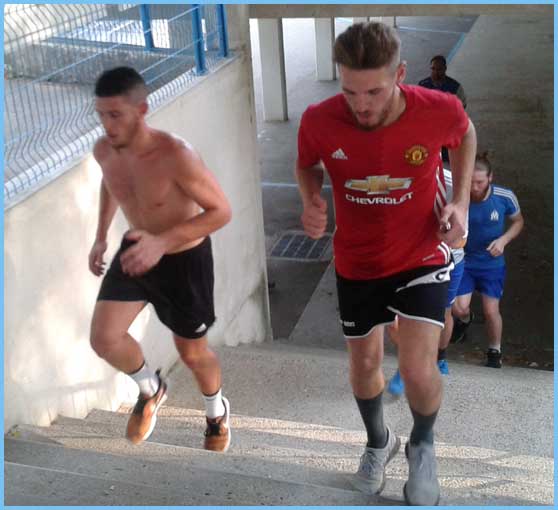 L’entraînement a déjà repris depuis une semaine et les joueurs répondent présent. Ce mercredi, pourtant, ils ont eu droit à une séance assez physique. Il suffit de regarder les photos pour voir que ce ne fut pas de tout repos ! Coupe de France oblige ! Il faut s’entraîner avec sérieux et Clément l’a très bien compris, d’où cette séance style « stage commando ». Mais pas de problème, les gars ont assuré !