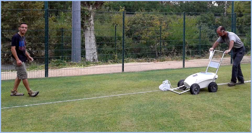 "Chistophe toujours au top, aidé par Thomas, prépare le terrain pour la Coupe de France et les prochains matches ! Vous comprenez pourquoi nous avons eu les félicitations du corps arbitral pour le traçage du terrain ? Bravo et merci à la Mairie !"                                    Le président