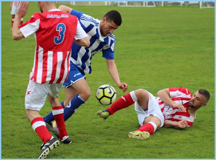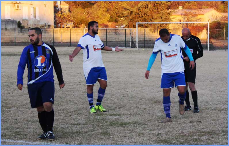 La première avait pourtant bien débuté le match en marquant dès les premières minutes par Marc (Pio). Mais deux erreurs ont permis à Piolenc de revenir au score et de prendre l’avantage avant la mi-temps. En deuxième mi-temps, la rentrée de Pablo (Calvet) fut bénéfique à l’équipe puisqu’il signait un magnifique but des 30 mètres.  Hélas ! trop de querelles internes sur le terrain déstabilisaient l’équipe et Piolenc en profitait pour inscrire le troisième but de la victoire.