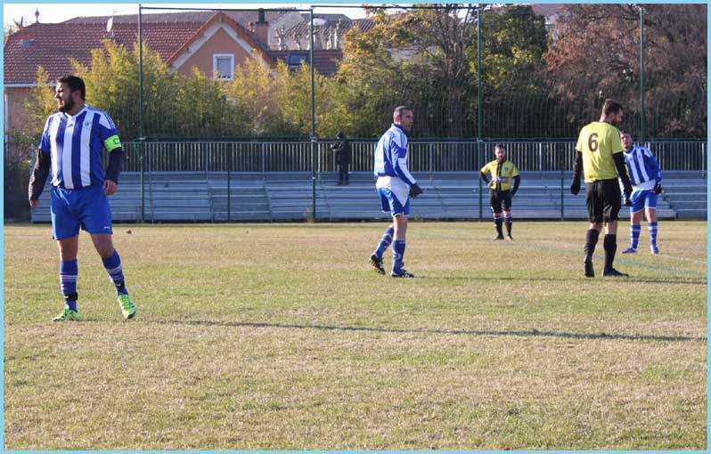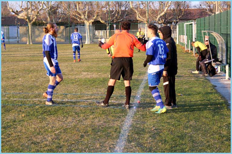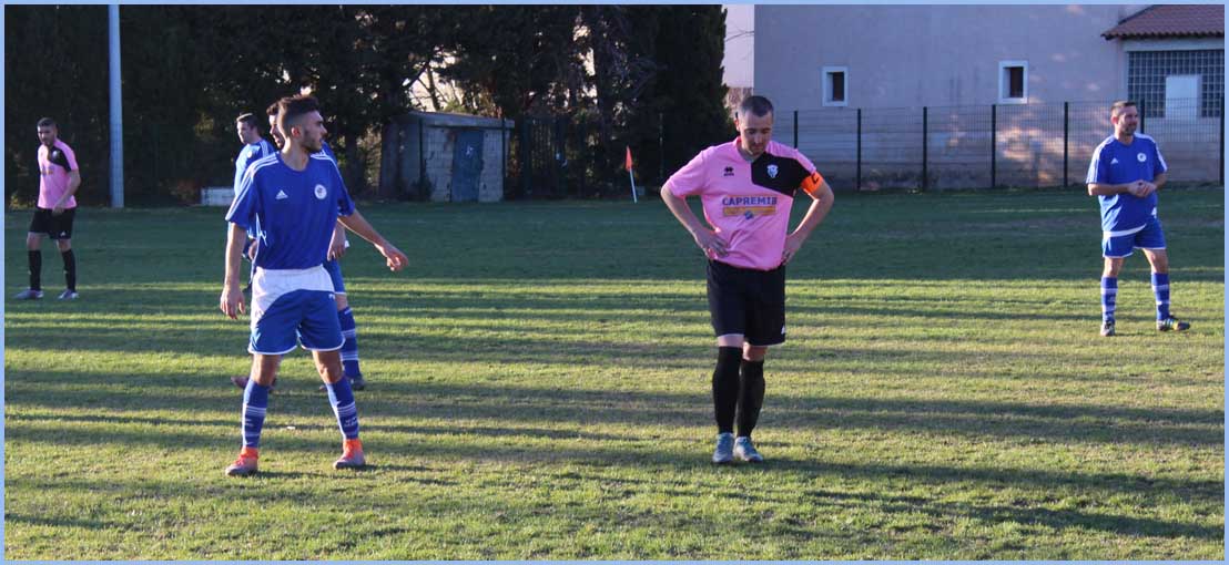 Si la technique est là, le mal récurent de l’équipe est le manque total d’esprit de groupe. Beaucoup trop de joueurs (qui ne sont pas à l’abri d’erreurs) reprochent automatiquement à leurs collègues la responsabilité d’une mauvaise action. Trop de critique, pas assez d’envie et de physique font d’un match, à notre niveau, une véritable mascarade. Encore une fois, du banc de touche, c’était désolant de voir la prestation de nos joueurs. C’est rageant de devoir repartir d’un terrain avec les oreilles basses et de la honte. Vexation de plus, Caromb, avec 3 joueurs qui jouaient pratiquement avec une seule jambe pour cause de blessure, n’a eu aucun mal à inscrire les 6 buts. Heureusement pour certains, il n’y a pas trop de concurrence à leur poste. Vu leur forme physique due à un samedi soir fatigant ou à autre chose, ils ne joueraient sûrement pas régulièrement en première. Julien, malgré tout, a inscrit un magnifique but en retourné mais cela ne l’a pas fait sortir du lot pour autant.