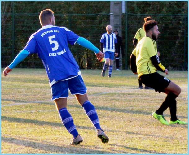 Evidemment, j’entends déjà les détracteurs dire « Oui d’accord mais l’équipe d’en face a une division d’écart ». Je le conçois mais quand on inscrit 8 buts, c’est qu’il y a du sérieux dans le jeu. Ce dimanche, j’ai vu des gars qui ont fait ce qu’on leur demandait. Pas de relâchement, pas de paroles, des belles actions, même les deux entraîneurs, qui ont joué la fin du match, ont donné un coup de pouce à l’équipe. Laurent derrière a fait son boulot et Clément s’est même payé le luxe de marquer un but. Que dire de Julien qui, lundi a été papa, et qui ce dimanche inscrit un triplé, on ne peut rêver de mieux comme semaine, non ? Samir se remet à marquer (un doublé) et Marc l’imite avec un doublé assorti d’un magnifique ciseau devant les buts. Passons sur deux malentendus de l’arbitre qui nous a sorti deux cartons blancs complètement hors sujet mais sans conséquences. La défense, quant à elle, a montré son talent et sa rigueur, ce qui fait que Jean-Baptiste a eu un dimanche très relax dans les cages.