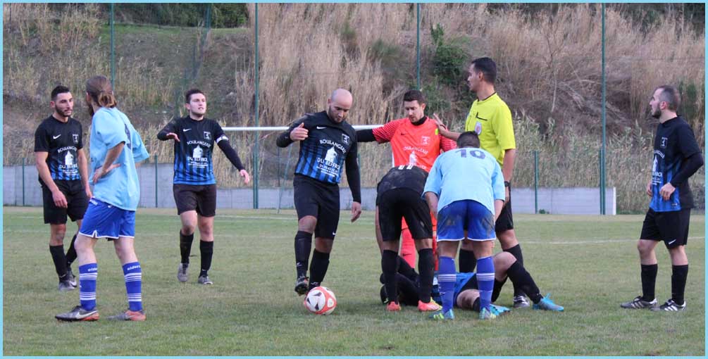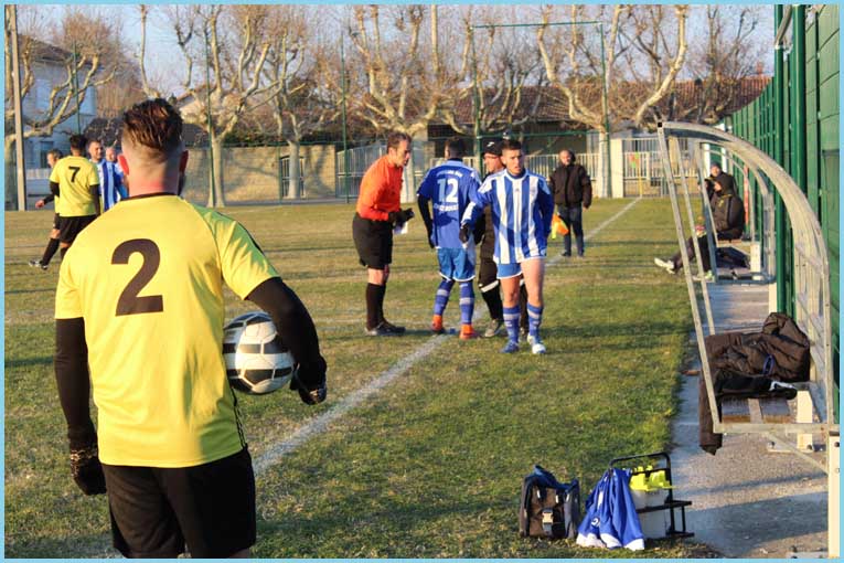 Sous un ciel menaçant, la réserve attaquait son match avec sérieux. Contrairement à l’habitude, pas un mot sur le terrain et des joueurs qui pensaient à jouer en priorité. Résultat : un score fleuve pour Mondragon. Un doublé pour Moga Nicolas (qui aurait pu faire un triplé), un but de Boussakout Mohamed, Gremont Valentin, Mhoma Omar et Davy Roméo. Dimanche particulier pour Roméo qui marque son premier but en sénior, lui qui est le plus jeune sur le terrain (-17 ans). Notons le très bon match de Khoukhchi Omar qui peut servir d’exemple aux autres par son sérieux, son calme et sa discipline. Bravo à tous et souhaitons que ce match serve d’exemple même si c’est un peu tard !