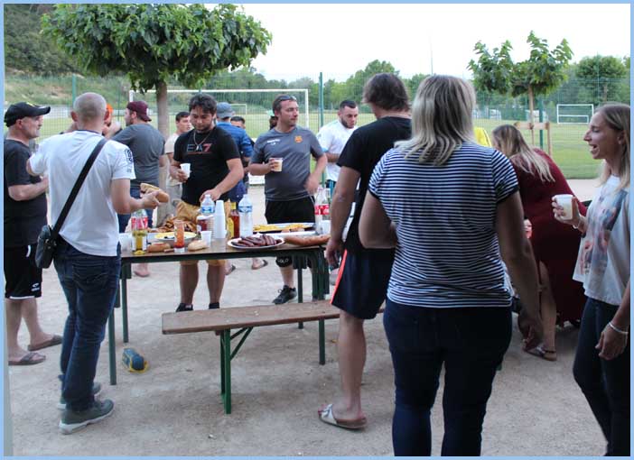 Avant le dernier match de la saison Dimanche 27 mai, entraînement décontracté, suivi d'une plancha et des éternelles frites (bien sûr, le tout bien arrosé !) et de pétanque sur le stade Gabriel Menu jusque tard dans la nuit !  C'est ça une ambiance de club de village !                                                                                                                        Jean-luc