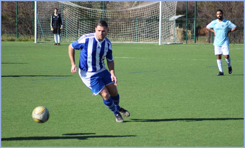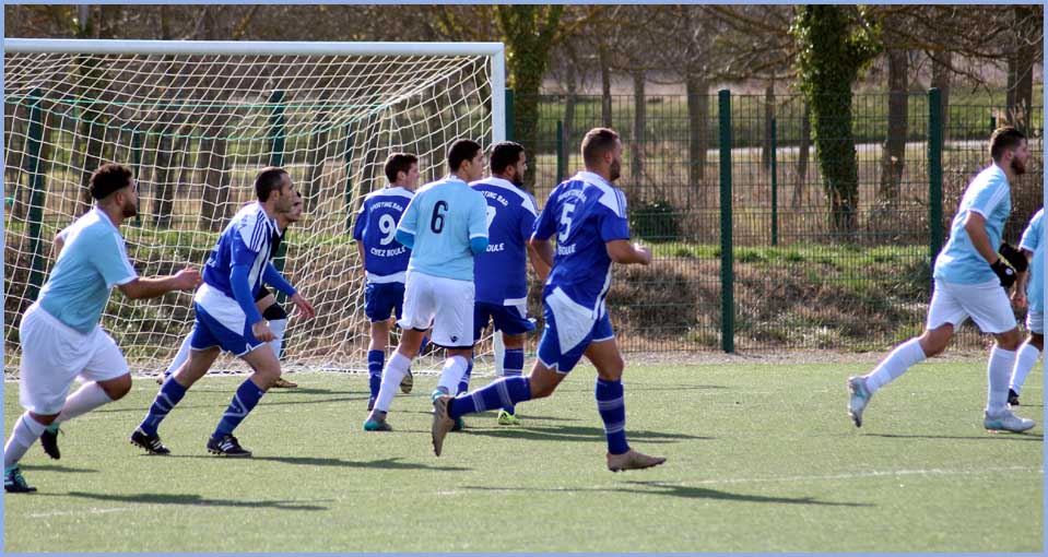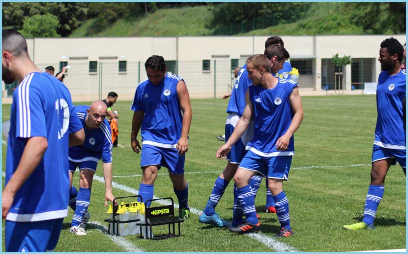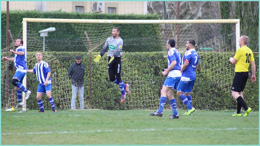 Non, vous ne révez pas, la première gagne enfin ! Cela faisait longtemps que nous n’avions pas goûté aux joies de crier dans les vestiaires ! Malgré une mise en route assez longue, nos butteurs ont retrouvé le chemin des filets. Julien (Cavagna) et Marc (Pio) s’offrent un doublé et Renaud (Paulin), malgré un genou fragile, marque. Est-ce que cela va être le déclic ? C’est possible avec, enfin, le retour des blessés. Notons la belle arrivée de Jean-Baptiste (Bertoia) en première qui, malgré quelques loupés, a fait une bonne prestation.