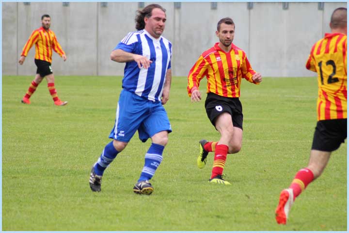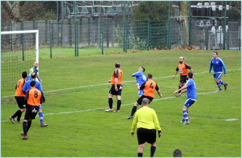 Après, je pense, le but le plus rapide de ce dimanche (55 secondes) Samir (Tabache) enchaînait une série inhabituelle de maladresses devant le but. Mais heureusement, au même moment Nicolas (Rault) s’offrait un doublé. A 2 à 1, après avoir encaissé le seul but des locaux, l’éternel moment de doute s’installait. Heureusement ce fut de courte durée ! La mi-temps arrivait avec le score de 4 à 1 avec un CSG de Saint-Saturnin. A la reprise, Julien (Cavagna) inscrivait le cinquième et, en fin de partie, Omar (Mohma) trompait le gardien d’une belle tête. Seule ombre au tableau : Rudy (Boyer) qui ne s’en sort pas avec sa blessure à la jambe et a dû laisser sa place au gardien « joker » Steven (De Figueiredo).