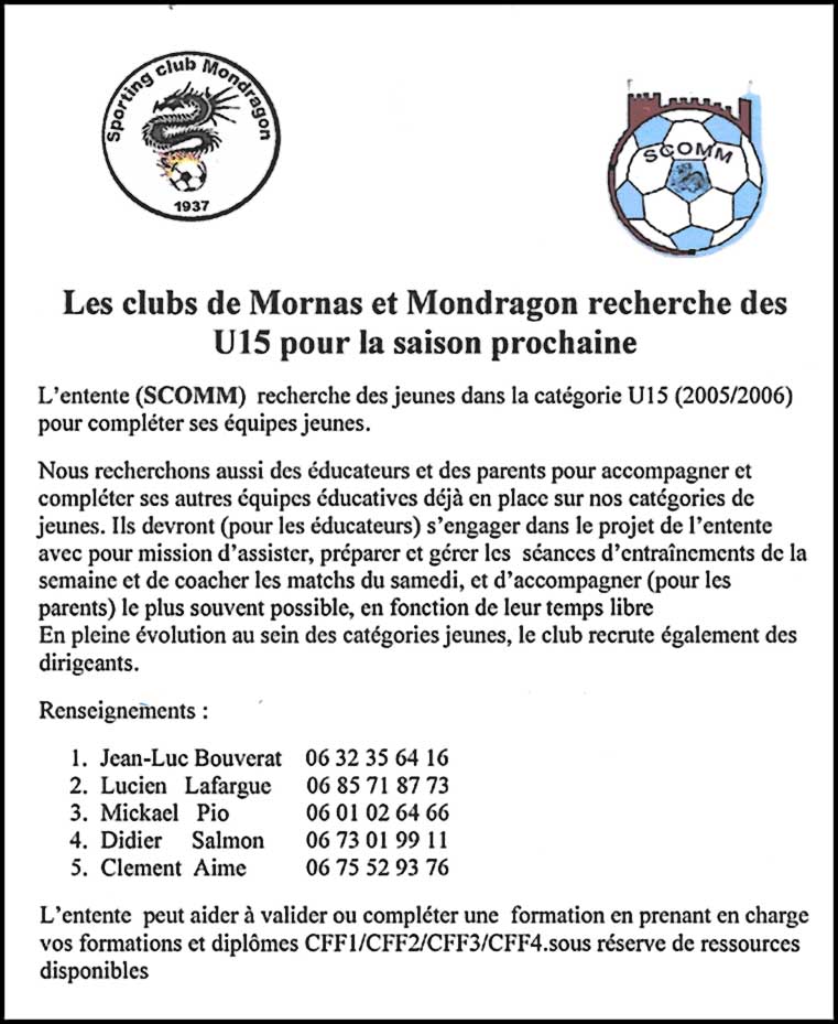 ou sur le compte Facebook du club (Sporting club de Mondragon)