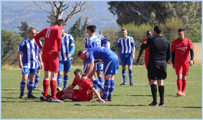 La réserve, malgré sa bonne volonté, a été surclassée par une équipe d'Autre Provence qui devrait être sûrement en division supérieure ! La différence était tellement flagrante que la déception n'est même pas présente à la fin du match ! Certaines défaites remettent les pendules à l'heure et montrent le niveau que l'on a ! Il n'y a qu'une solution, entraînement et solidarité. Un joueur ne l'a pas compris ce dimanche et c'est dommage !