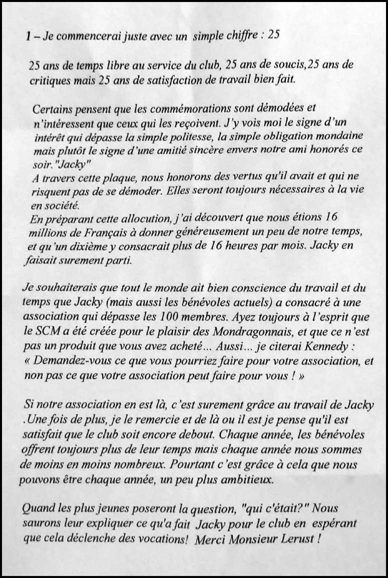 Certains diront que mes articles sont un peu piquants, mais au moins personne ne pourra dire que je pratique la langue de bois .Quand c’est bien, je le dis, quand c’est mauvais, je le dis aussi ! C’est aussi cela, une ambiance saine dans un club !