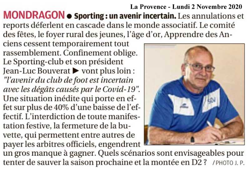Sporting-Club Mondragonnais Mardi 10 Novembre 2020
