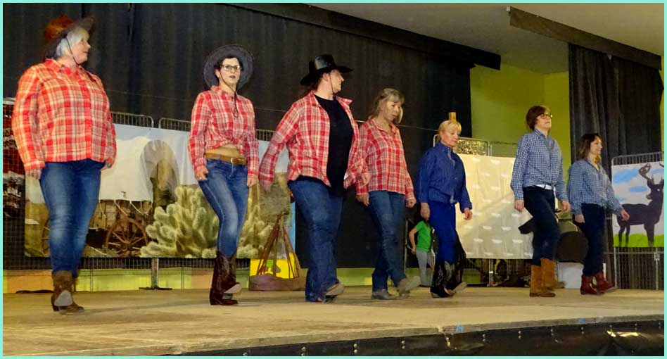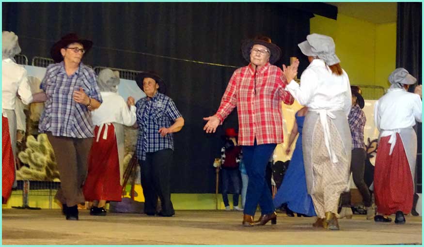 Dynamisée par un renfort extérieur conséquent, la section Dragon’ Country du Foyer des jeunes a fait une rentrée substantielle et le plein de la salle des fêtes, ce dimanche. Bien au-delà des habituelles animations hypothétiques, décrochées ici ou là lors d’événements festifs locaux, aujourd’hui, le noyau mondragonnais, dirigé par Isabelle, a pour partenaires des adeptes recrutés dans des clubs de la Drôme, au Teil (country HDC), à Pierrelatte (Twirling Dance Académy) et à Donzère. Le tout constitue une troupe bigarrée de tous âges, avec un duo remarquable (Claude et Sandrine), un danseur de claquettes (Tony) et les jeunes pompons (Pierrelatte). Le quota mondragonnais porte sur huit enfants (Foyer des jeunes) et quelques mamies alertes (résidence Peyrafeux).