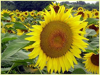 - Là, sur ma droite, l'air accablé des tournesols n'a rien de tellement désopilant.