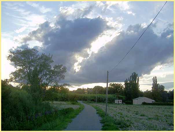 - Ce soir-là, au bout du chemin, un gros machin noir obstrue le bas du ciel et menace de m'écraser.... Stop !
