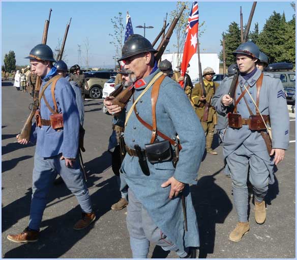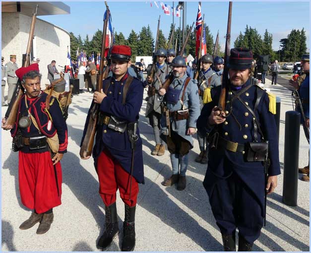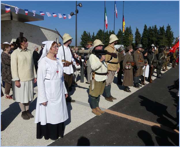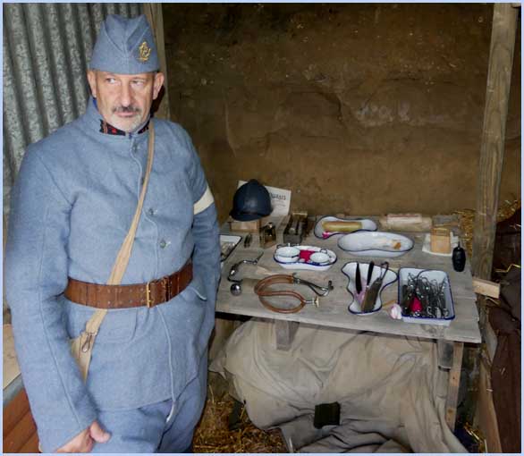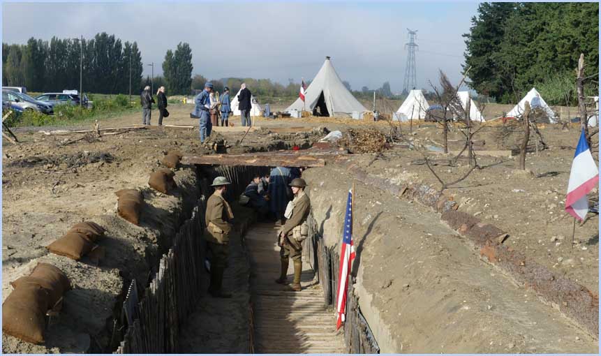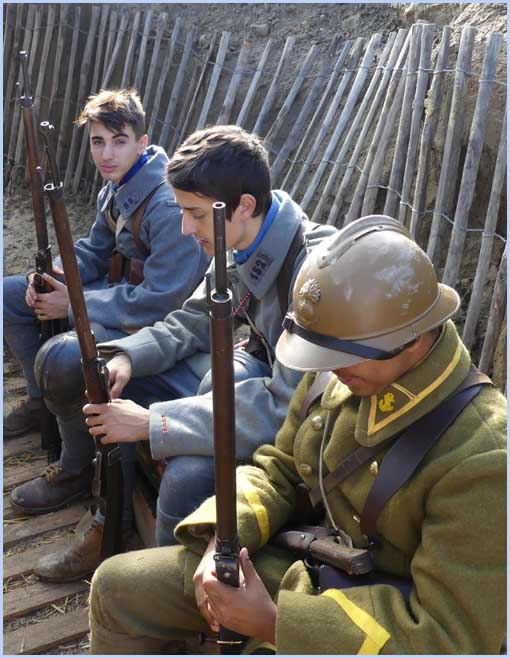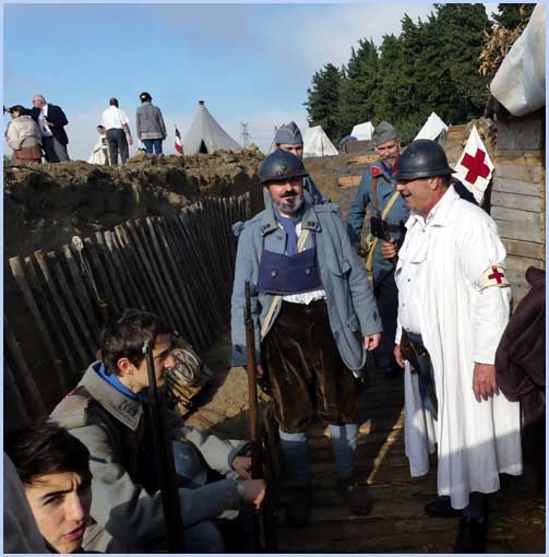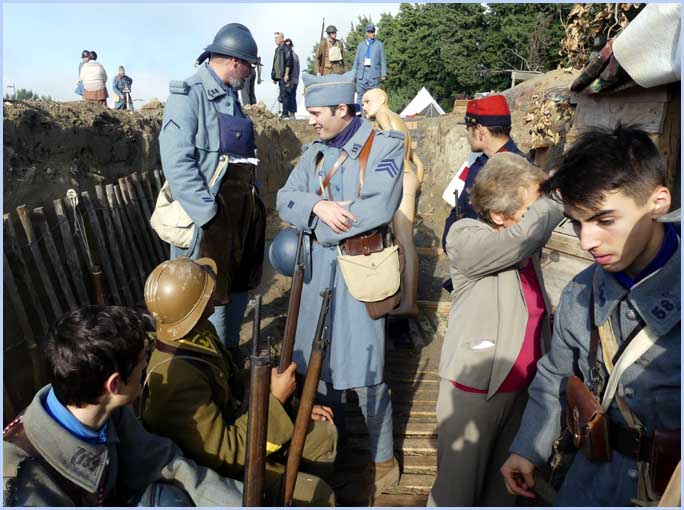 L'écart d’un siècle dans la tranchée reconstituée entre Poilus et visiteurs. |