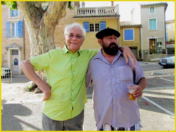 Mon pote Charly a préféré le béret basque.               Le maire (au centre) est de la fête.                    Le canotier de Gérard est très représentatif.