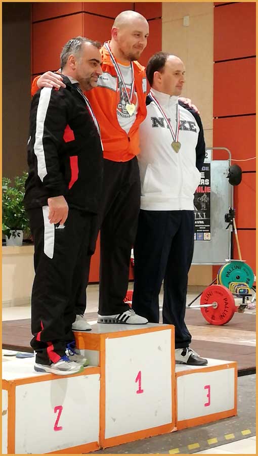 A l’arraché, Nicolas réalise 120kg, ratant de peu 125kg. A l’épaulé jeté, il réalise la très honorable charge de 165kg. Avec un total de 285kg, Nicolas remporte le titre de champion de France, et se qualifie pour les championnats du Monde Master qui se dérouleront à Barcelone en août prochain.