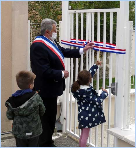 ![]() Inauguration en présence du maire et de son conseil, et des enfants. |