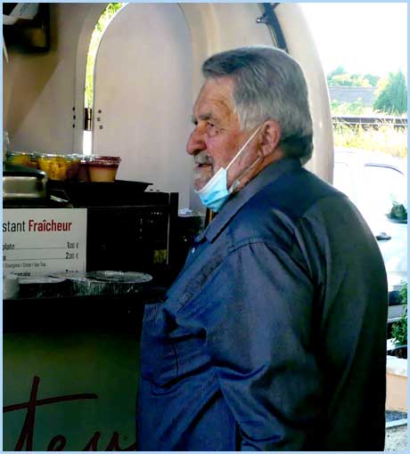 ![]() Le maire Christian Peyron montre l'exemple et fait son marché. |