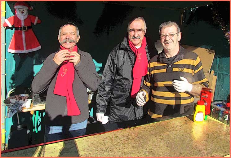 ragaillardis par le vin chaud et les saucisses-frites, proposés