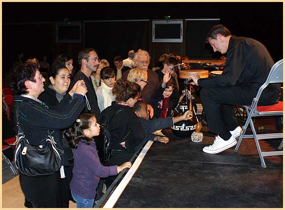 objets hétéroclites lui servant de percussions. Tout ceci durant