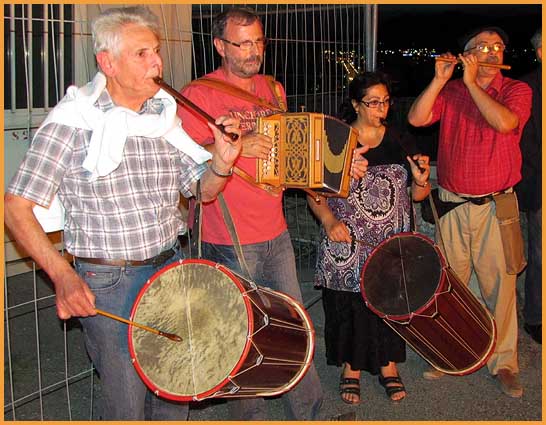 Des musiciens fidèles animent le rassemblement autour du feu. Claude Raoux et Annie Vadon volent au secours de la tradition.