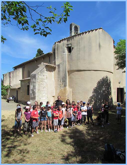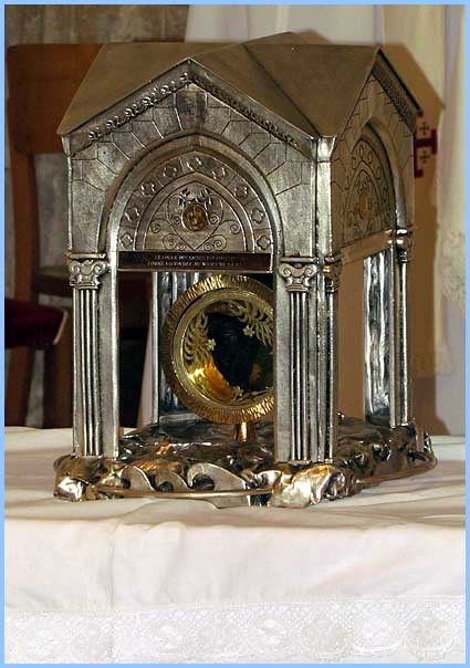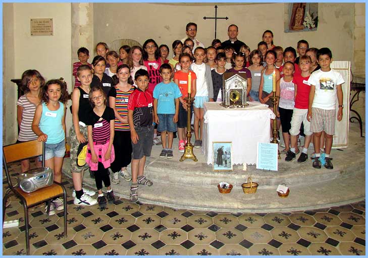 Les enfants du catéchisme autour du reliquaire (photo à droite) contenant le cœur du saint.  |