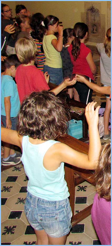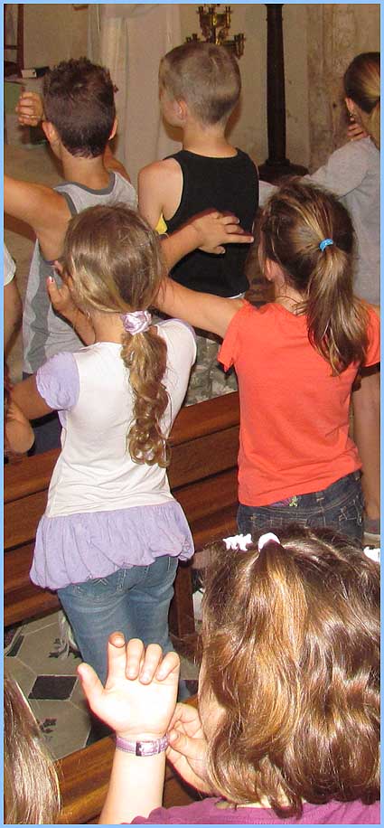 L'escapade n'est est pas une. Les jeunes ouailles sont efficacement chaperonnées et conduites vers l'adoration eucharistique.  |