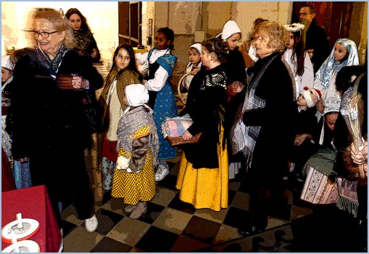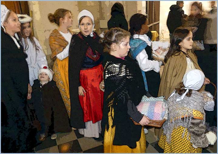 escortée par les tambourinaires, qui se rend à la chapelle des