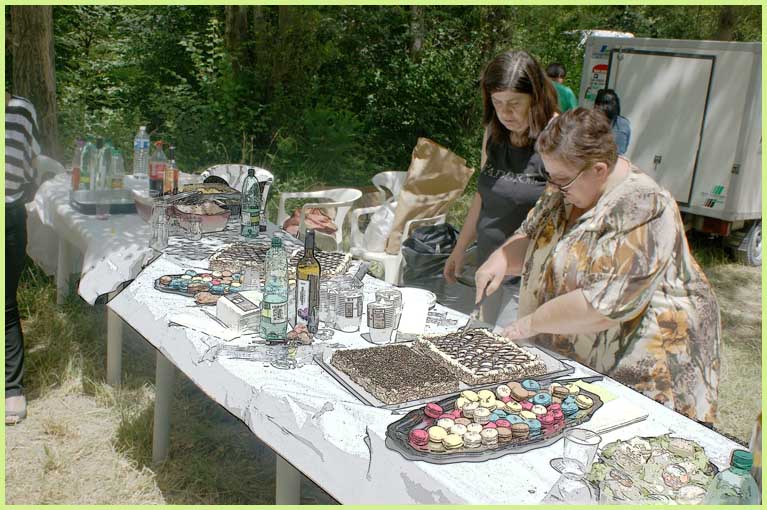 Pique-nique offert par Lafarge Granulats       Pâtisserie fait maison par Evelyne Beaucamp + macarons d'Audrey (fille du président Feigniez)