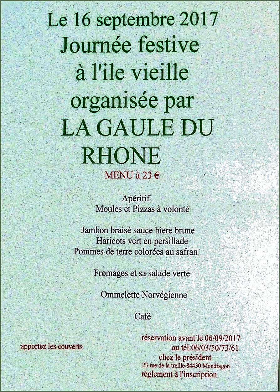 café. Prix 23 €. Apporter ses couverts. Réservation et règlement