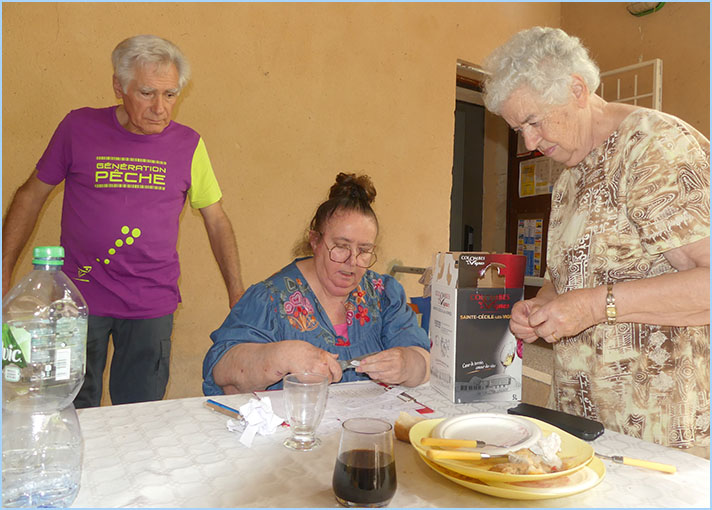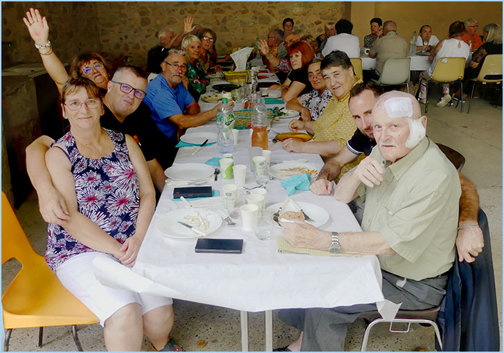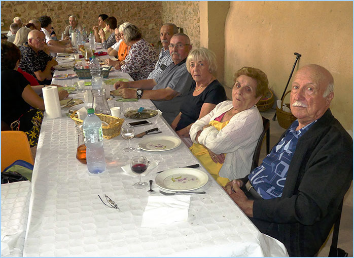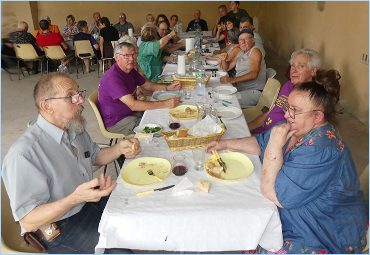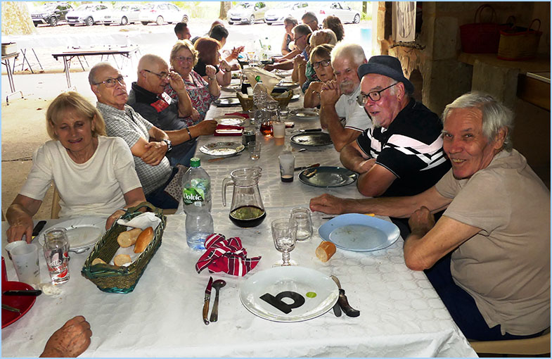 ![]() Au menu : gigot d'agneau, gratin dauphinois, ratatouille, fromage, vacherin glacé, vin, café |