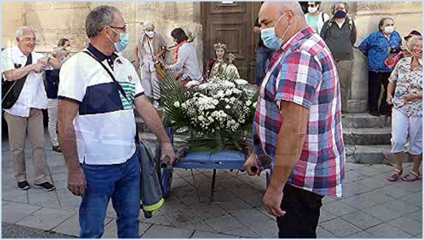 Réduit à l’essentiel, cette année, le pèlerinage s’est privé de ses attributs habituels. Pas de kermesse ni de cordiales agapes en plein air, encore moins de spectacle ou jeux de boules. Covid oblige ! Partie du village et précédée de tambourinaires et d’une statue de la Vierge véhiculée sur une charrette fleurie, la procession a parcouru à pied 4 kilomètres pour atteindre la chapelle de Notre-Dame des Plans, restée vide. L’office était célébré à l’extérieur par le père dominicain Joseph Pini, invité pour la circonstance par le père André Wasilewski qui l’assistait. Dûment masqués, chorale comprise, les ouailles ont chanté les louanges à Marie, remerciée depuis trois siècles pour avoir notamment épargné Mondragon de la peste de 1720 ou, au siècle dernier, dévié le tracé du proche canal de Donzère-Mondragon évitant de justesse le rasage de la chapelle. Prions-là toujours de nous éviter le Covid 19.    J. P.