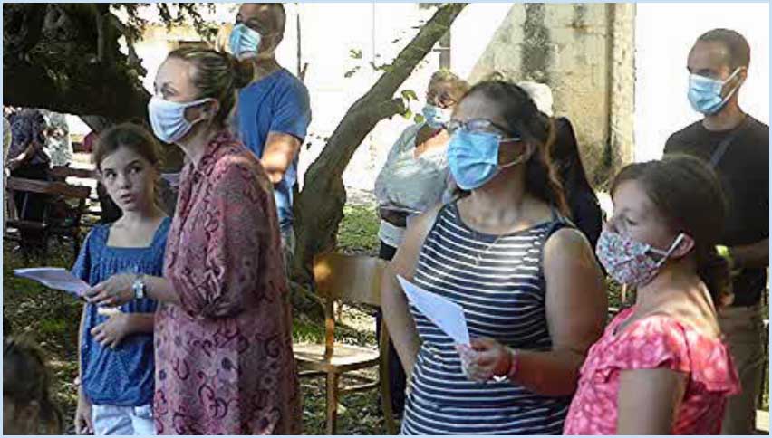 Messe en plein air pour éviter une concentration déconseillée dans la chapelle... Covid oblige !
