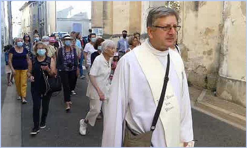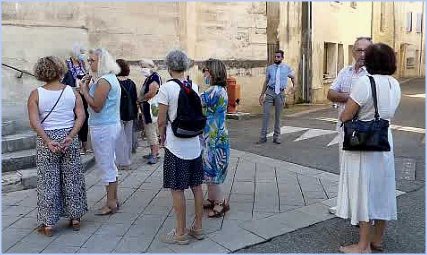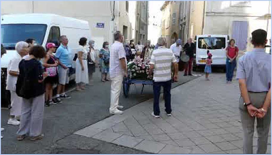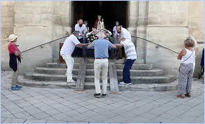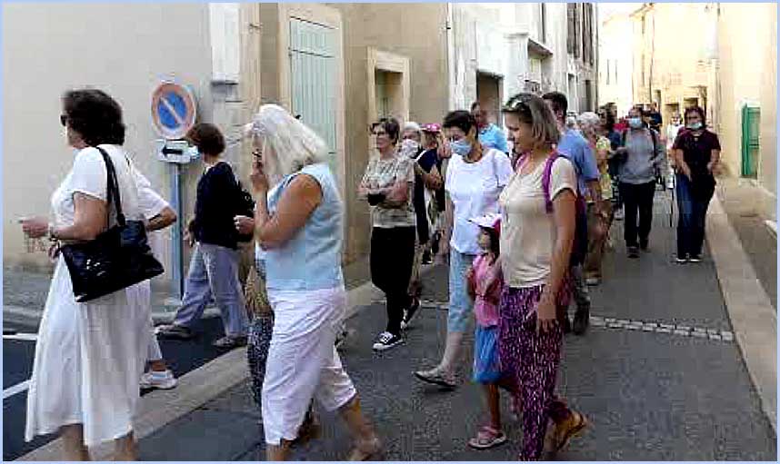 ![]() Rassemblement et point départ sur le parvis de Sainte-Trophime. Mais les pèlerins se raréfient au fil des décennies... |