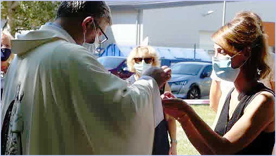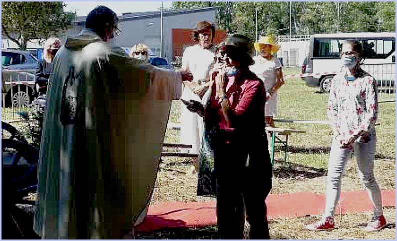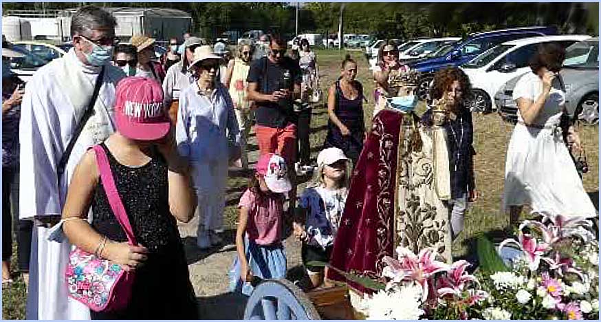 ![]() Les aînés ont zappé la procession et sont venus en voiture (navette et véhicules particuliers) |