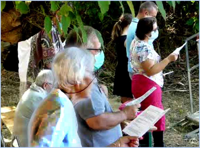 ![]() Les choristes chantent en alternance... La prière (essentielle) prévaut sur la qualité (relative) du choeur |