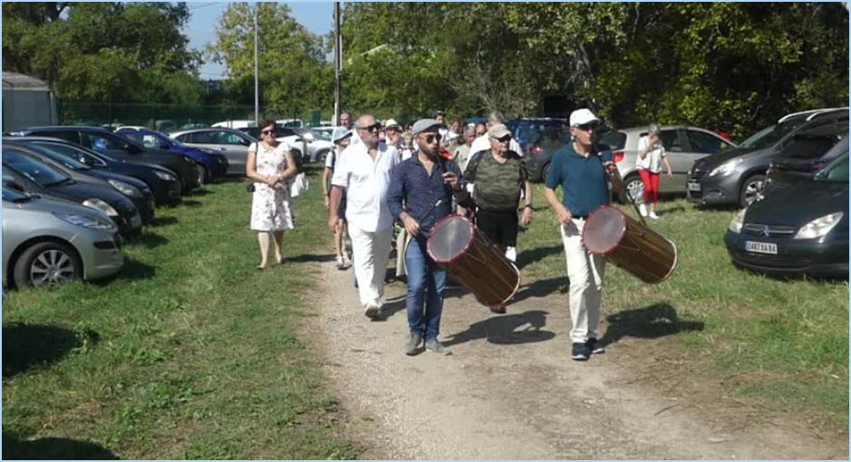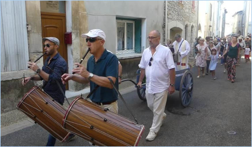 fleurie. Deux tambourinaires ouvrent toujours la marche et