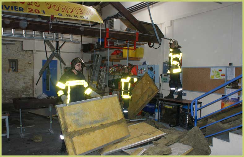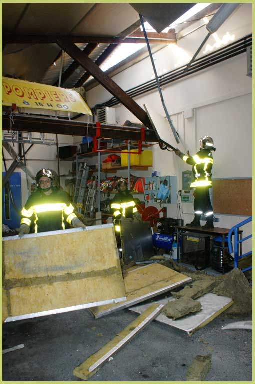 Vers 15 heures 30, des tôles ondulées et des poutres se sont soulevées,