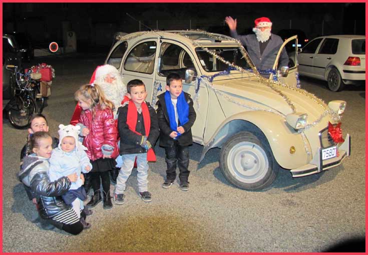 superbe Citroën 2 CV. Chaque enfant a reçu un cadeau. Un cordial
