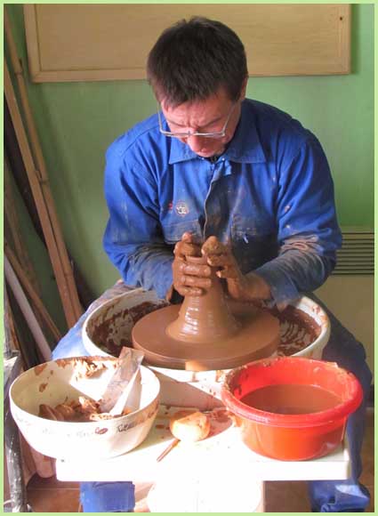 Alerté par Gérard Fayolle, retraité dynamique d’EDF (par ailleurs très apprécié à Mondragon en tant que bricoleur bénévole de génie parmi les associations), je suis allé tâter le pouls de cette curieuse manufacture, discrètement axée depuis quelque 25 ans sur l’art de la poterie.