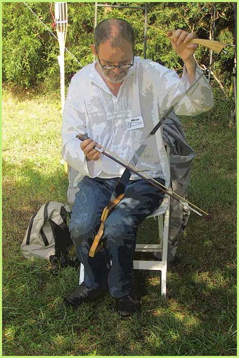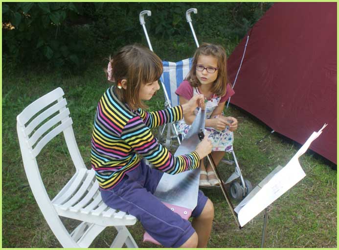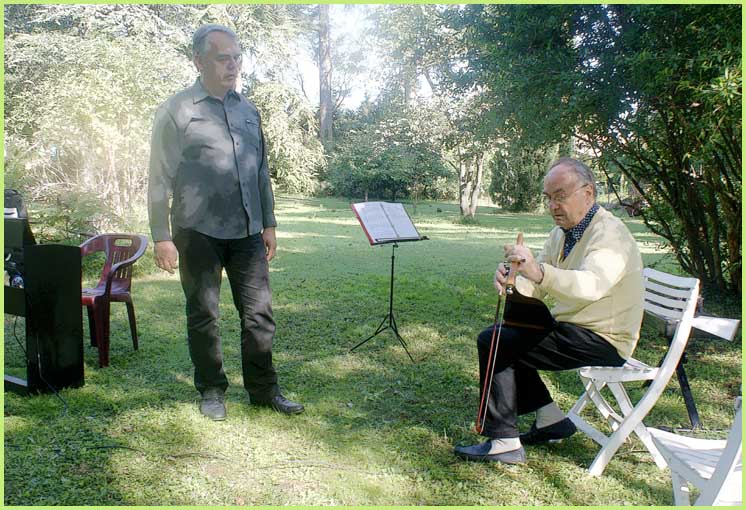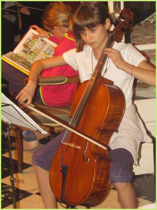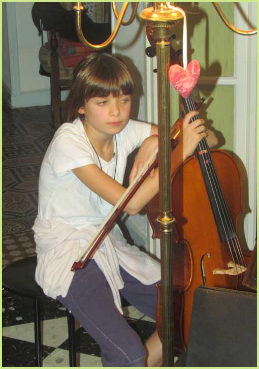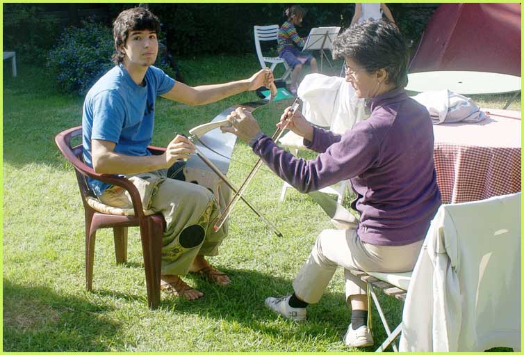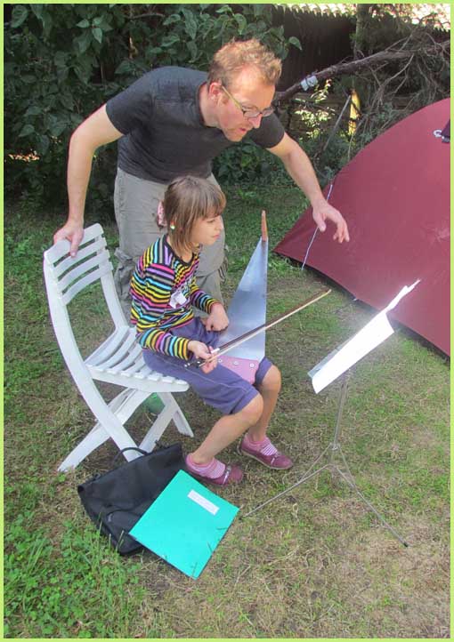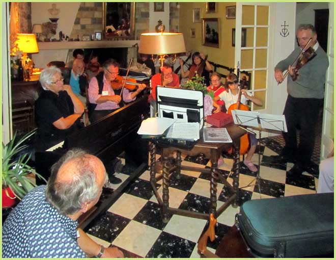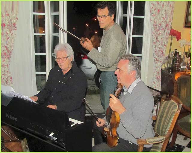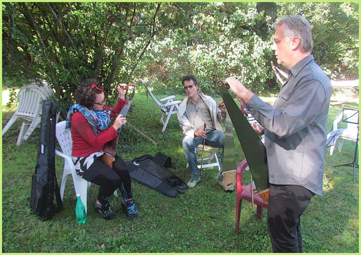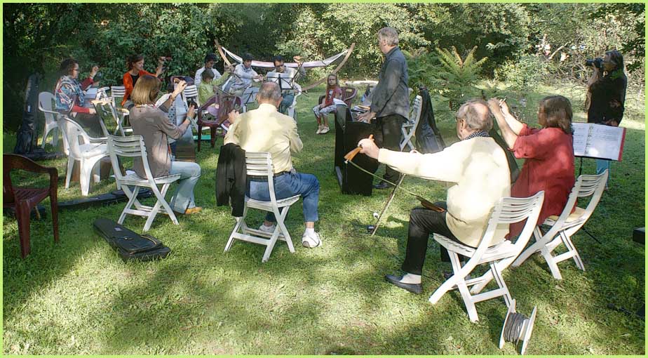 :Parallèlement au stage de scie musicale, un tout autre concert semble s'être amicalement improvisé dans la maison.