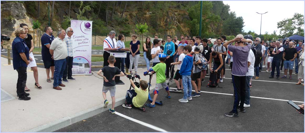Coût global : 550 000 € entièrement financés par la CCRLP. Ont participé à la réalisation : cabinet RCI, société Eiffage, E2S Compagny, Ets Jardin de Pierre, Aimé Florian, employés municipaux (sanitaires). Un généreux buffet et une démonstration de skateboard par des initiés ont conclu cette cérémonie bon enfant.  J. P.