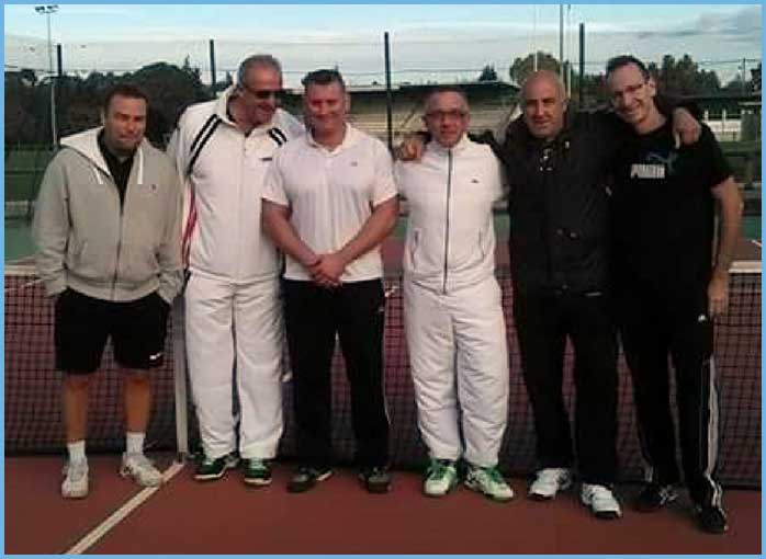 Ce week-end, avait lieu la 2ème journée du championnat Séniors +. Si les + de 35 ans d'Aubagne n'ont pas appliqué les conseils de la Ligue (anticiper la rencontre à samedi du fait du mauvais temps), les + 45 ans (notre photo) l'ont fait sous un soleil radieux ce samedi sur les courts de Peyrafeux.