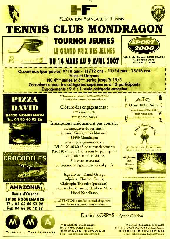 | Tennis-Club Mondragon Lundi 9 avril 2007 Tournoi des jeunes - Remise des prix |
