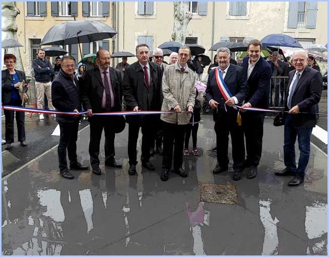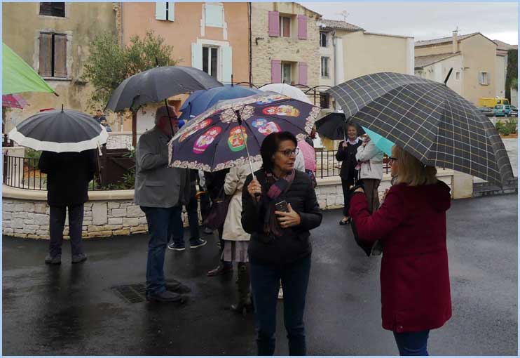 Ce samedi matin, l’humidité n’entamait en rien la bonne humeur générale. Une joyeuse cohorte de parapluies se déplaçait dans le village pour inaugurer de nouveaux espaces de vie agréables, réalisés selon la poursuite de la réhabilitation du centre ancien. A l’origine de ces travaux, Christian Peyron et Anthony Zilio, respectivement maire de Mondragon et président de la Communauté de communes Rhône-Lez-Provence (CCRLP), accueillaient donc la population et diverses personnalités dont le sous-préfet et les représentants des communes environnantes du département et de la région.
