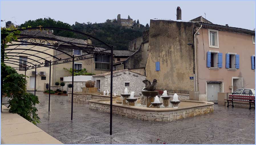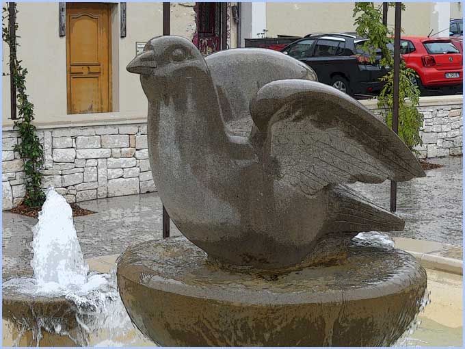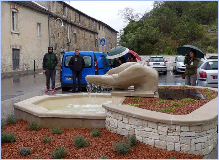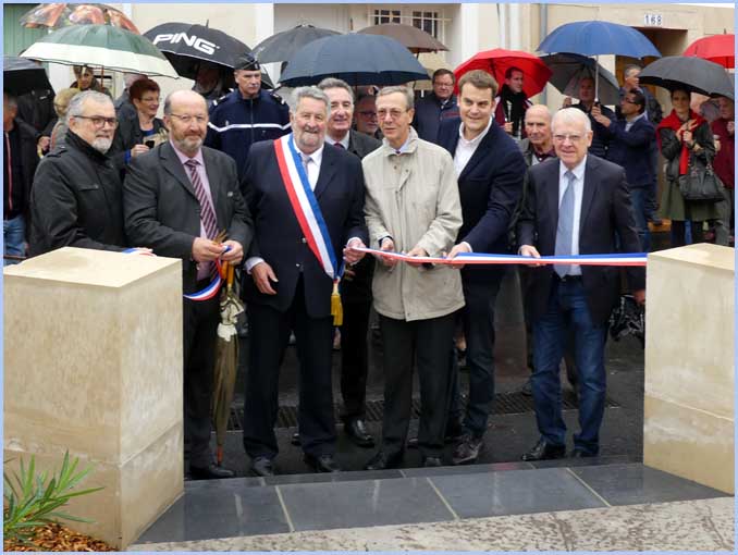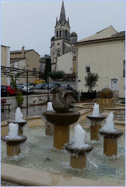 Cela se situe entre l’esplanade du Levant et la place Albertine Roche (précédemment inaugurées), à proximité des rues Emile Zola et Anatole France. Le maire a évoqué Adrien Verdoulet, agriculteur, et Jeanne Lunel, sonneuse de cloches, qui vécurent jadis dans ce quartier. Leurs habitations ont disparu depuis longtemps. Seule restait la maison de la famille Garcia, remerciée de l’avoir cédée. D’où ce jardin public avec une fontaine dotée de treize jets d’eau, deux bassins reliés par un canal et deux sculptures : un gros volatile et un globe terrestre. Une transformation spectaculaire dont se réjouissent les riverains (dont je fais partie)  !