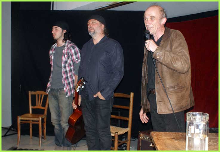 Ricardo Montserrat brocarde les dictateurs.                  Eric Fernandez (à droite) et son fils Enzo, guitaristes.
