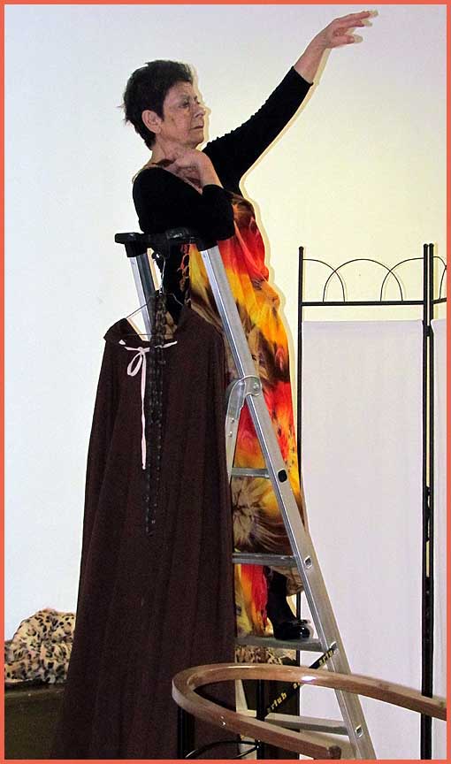 La suite monte ici d’un cran avec Maryam Bedin qui ne raconte pas, mais vit son récit, avec artifices vestimentaires et accessoires tels que ces pions grandeur nature empruntés au Club d’échecs. D’où cette cour hétéroclite se substituant à Marco Polo et son Livre des merveilles, aux papes d’Avignon, aux  croisades et autres templiers…