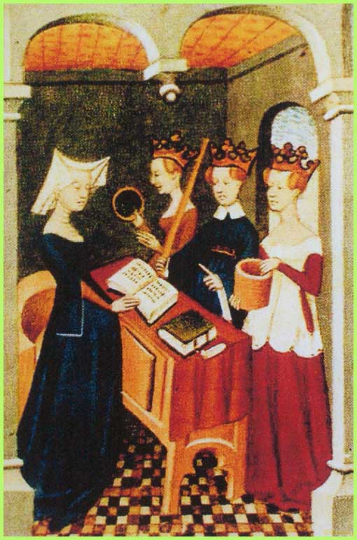 Au XIVe siècle, l’amour courtois enfièvre  les troubadours qui vénèrent les gentes dames. Paradoxalement, celles-ci seront bientôt victimes du changement des mentalités. La femme perd ses droits, n’accède plus à l’instruction, n’a plus de dignité. Ainsi l’entend l’Université de Paris, sous la houlette du droit romain.