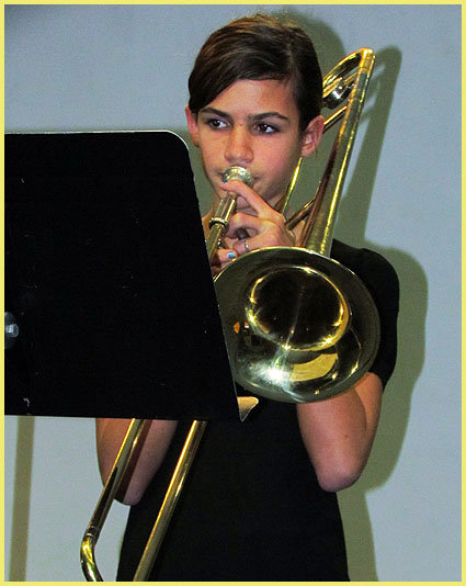 Sont aussi auditionnés ce jour-là des élèves des classes de piano, trombone, cornet, tuba et trompette. Loin de nous rebuter, pour «flottants » qu’ils puissent être, les concerts d’élèves restent d’une approche captivante. Au gré des cycles, on y voit poindre une émotion qui, parfois, devance la technique. C’est le cas d’Axelle et Léa (violon et piano), craquantes à souhait quand elles jouent en duo « Tout simplement » ! Romain, Hugo et Achille (trio de cuivres) ne sont pas mal non plus en jouant du blues.